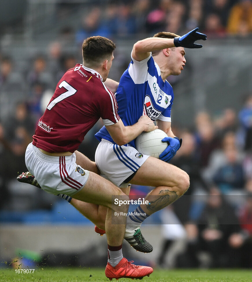 6 April 2019; James Dolan of Westmeath drags down Marty Scully of Laois, for which he received a black card, during the Allianz Football League Division 3 Final match between Laois and Westmeath at Croke Park in Dublin. Photo by Ray McManus/Sportsfile