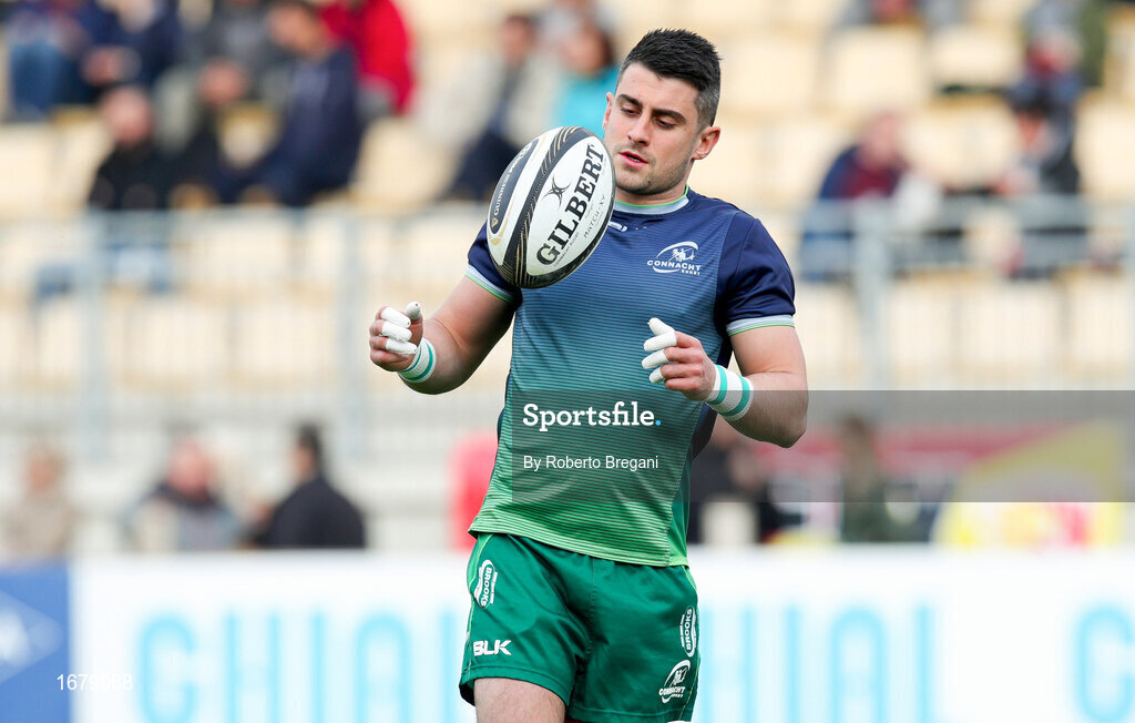6 April 2019; Tiernan O’Halloran of Connacht Rugby warms up prior to the Guinness Pro14 Round 19 game between Zebre Rugby Club and Connacht Rugby at Stadio Lanfranchi in Parma, Italy. Photo by Roberto Bregani/Sportsfile