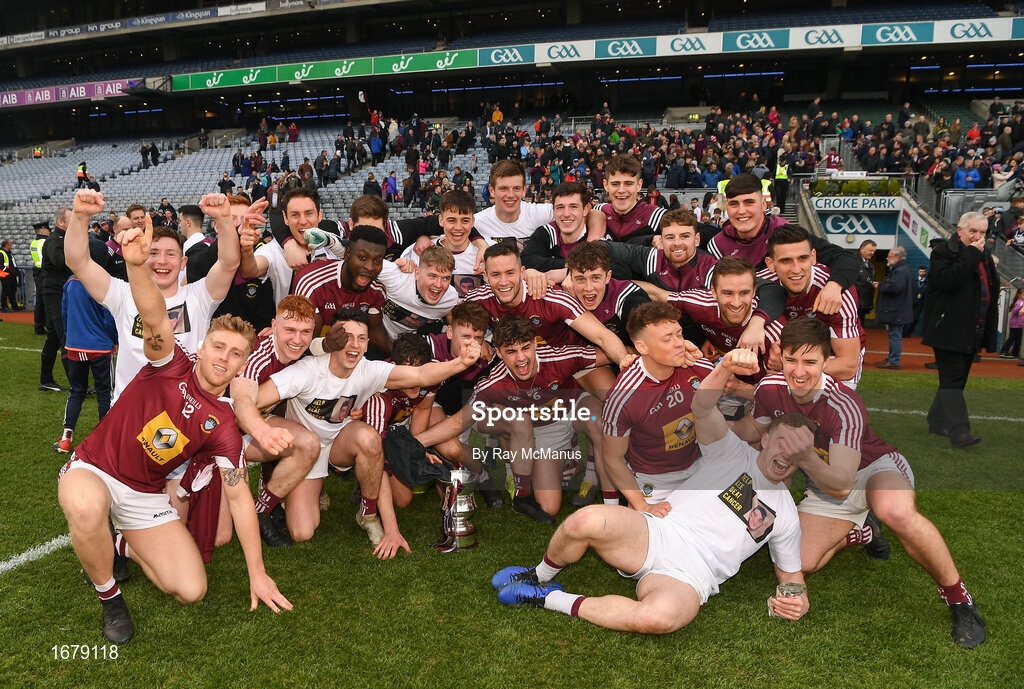 6 April 2019; The Westmeath players celebrate with the cup afterthe Allianz Football League Division 3 Final match between Laois and Westmeath at Croke Park in Dublin. Photo by Ray McManus/Sportsfile