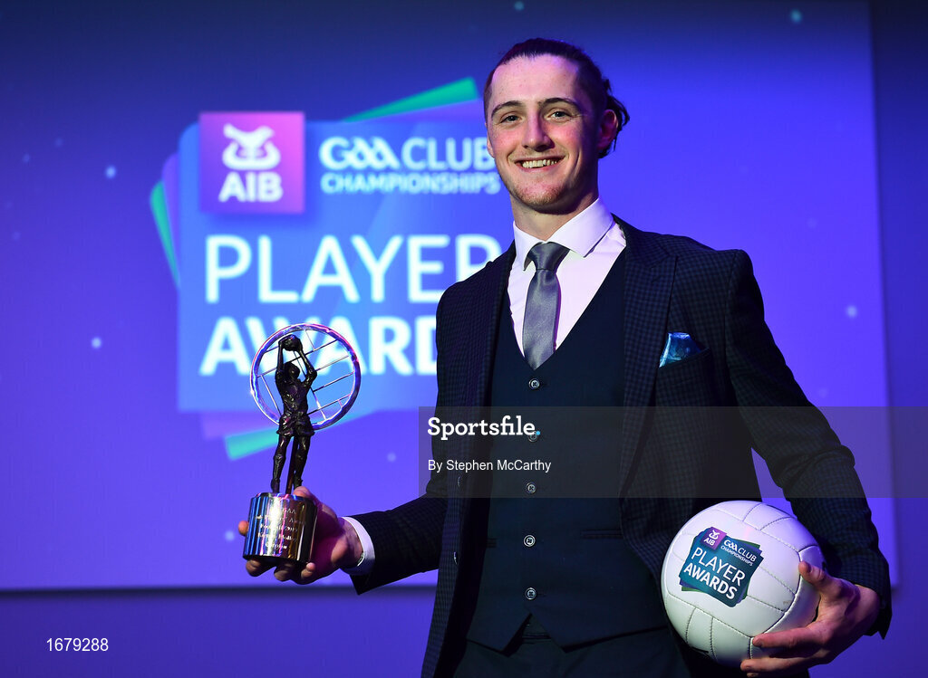 6 April 2019; Kieran Molloy of Corofin with his AIB GAA Club Footballer of the Year Award at the AIB GAA Club Player 2018/19 Awards at Croke Park in Dublin. Photo by Stephen McCarthy/Sportsfile