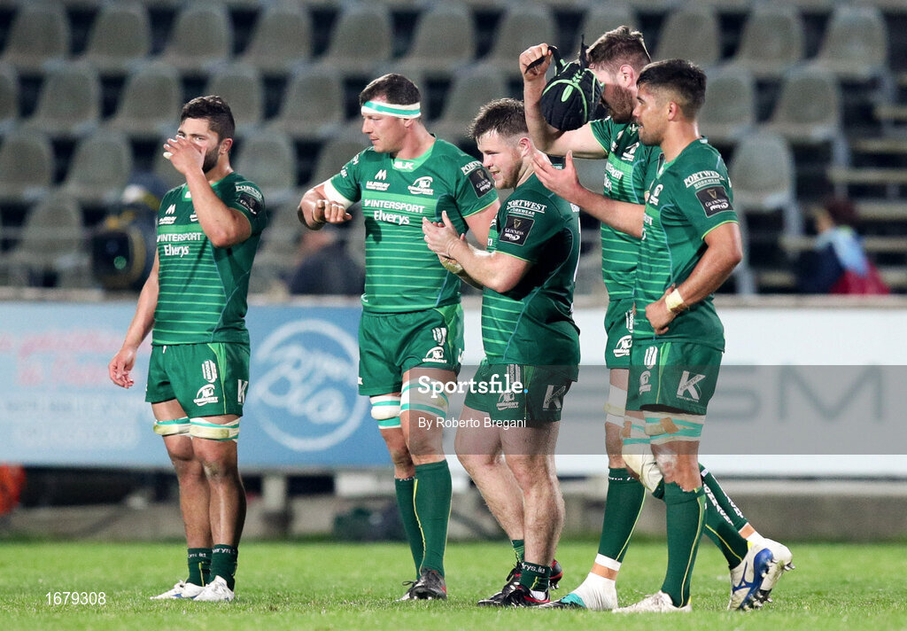 6 April 2019; Connacht players celebrate following the Guinness Pro14 Round 19 game between Zebre Rugby Club and Connacht Rugby at Stadio Lanfranchi in Parma, Italy. Photo by Roberto Bregani/Sportsfile