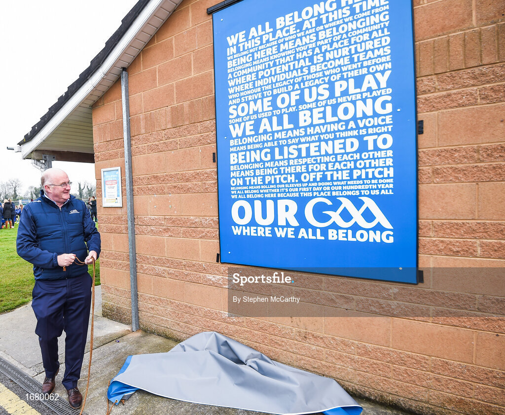 8 April 2019; Uachtarán Chumann Lúthchleas Gael John Horan at the unveiling of the new GAA manifesto in both Irish and English at St Colmcilles GAA Club in Bettystown, Co Meath. The manifesto is an affirmation of the GAA's mission, vision and values, and a celebration of all the people who make the Association what it is. The intention is for the manifesto to be proudly displayed across the GAA network and wherever Gaelic Games are played at home and abroad". It marks the start of a wider support message that celebrates belonging to the GAA, which is centered around the statement: ‘GAA – Where We All Belong’ / CLG – Tá Áit Duinn Uilig’. Photo by Stephen McCarthy/Sportsfile