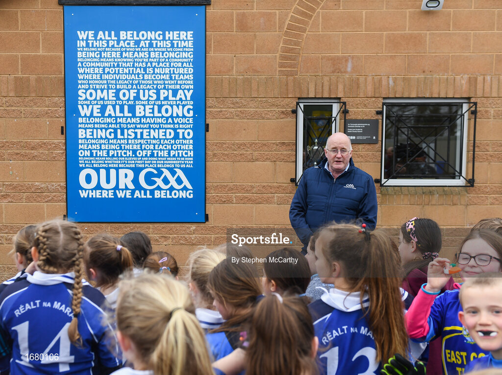 8 April 2019; Uachtarán Chumann Lúthchleas Gael John Horan at the unveiling of the new GAA manifesto in both Irish and English at St Colmcilles GAA Club in Bettystown, Co Meath. The manifesto is an affirmation of the GAA's mission, vision and values, and a celebration of all the people who make the Association what it is. The intention is for the manifesto to be proudly displayed across the GAA network and wherever Gaelic Games are played at home and abroad". It marks the start of a wider support message that celebrates belonging to the GAA, which is centered around the statement: ‘GAA – Where We All Belong’ / CLG – Tá Áit Duinn Uilig’. Photo by Stephen McCarthy/Sportsfile