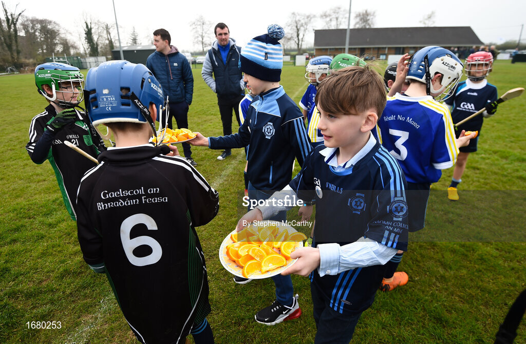 8 April 2019; Juvenile players at St Colmcilles GAA Club prior to the unveiling of the new GAA manifesto in both Irish and English at St Colmcilles GAA Club in Bettystown, Co Meath. The manifesto is an affirmation of the GAA's mission, vision and values, and a celebration of all the people who make the Association what it is. The intention is for the manifesto to be proudly displayed across the GAA network and wherever Gaelic Games are played at home and abroad". It marks the start of a wider support message that celebrates belonging to the GAA, which is centered around the statement: ‘GAA – Where We All Belong’ / CLG – Tá Áit Duinn Uilig’. Photo by Stephen McCarthy/Sportsfile