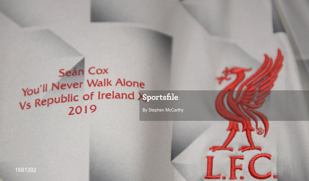 12 April 2019; A detailed view of the Liverpool FC Legends jersey prior to the Sean Cox Fundraiser match between the Republic of Ireland XI and Liverpool FC Legends at the Aviva Stadium in Dublin. Photo by Stephen McCarthy/Sportsfile.
