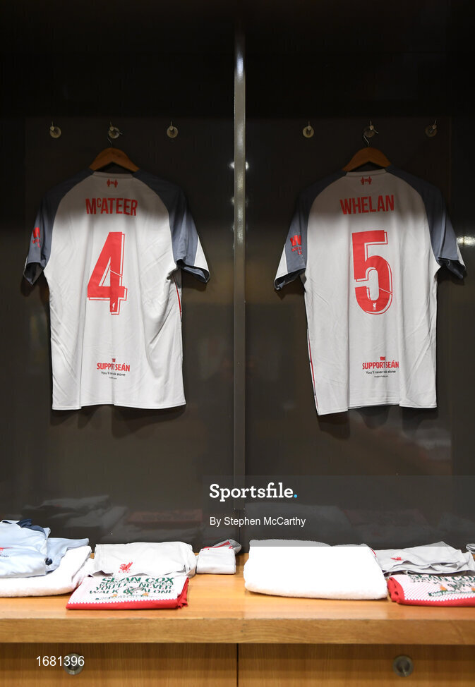 12 April 2019; A detailed view of the Liverpool FC Legends jerseys of Jason McAteer and Ronnie Whelan prior to the Sean Cox Fundraiser match between the Republic of Ireland XI and Liverpool FC Legends at the Aviva Stadium in Dublin. Photo by Stephen McCarthy/Sportsfile.