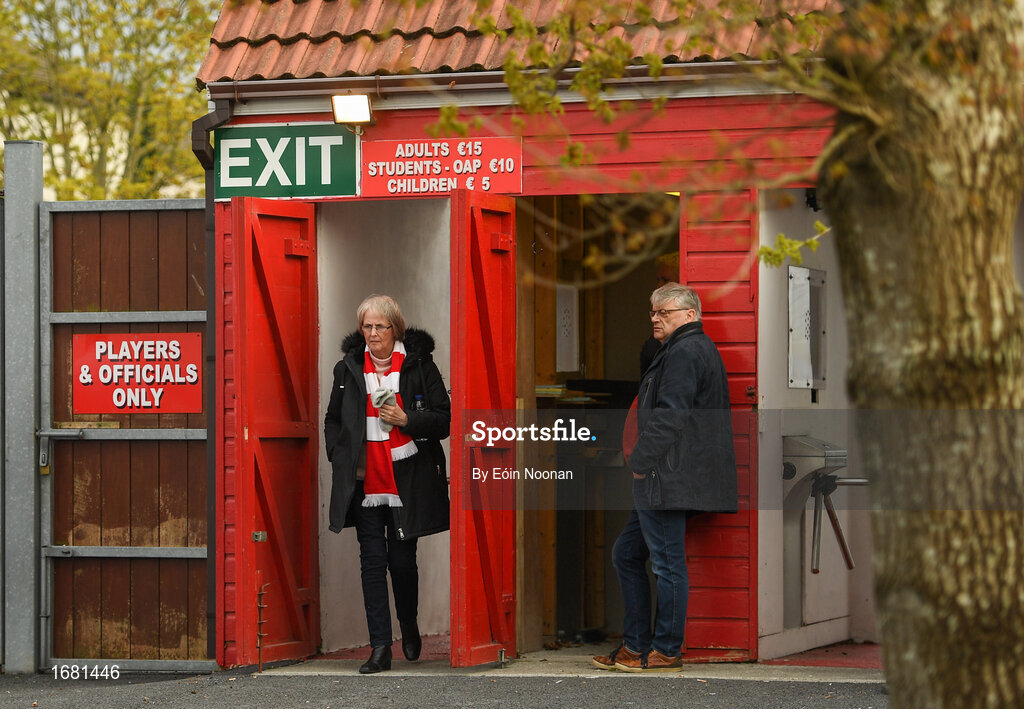 12 April 2019; Sligo Rovers supporter Mary Rainey from Sligo town makes her way into The Showgrounds ahead of the SSE Airtricity League Premier Division match between Sligo Rovers and Dundalk at The Showgrounds in Sligo. Photo by Eóin Noonan/Sportsfile