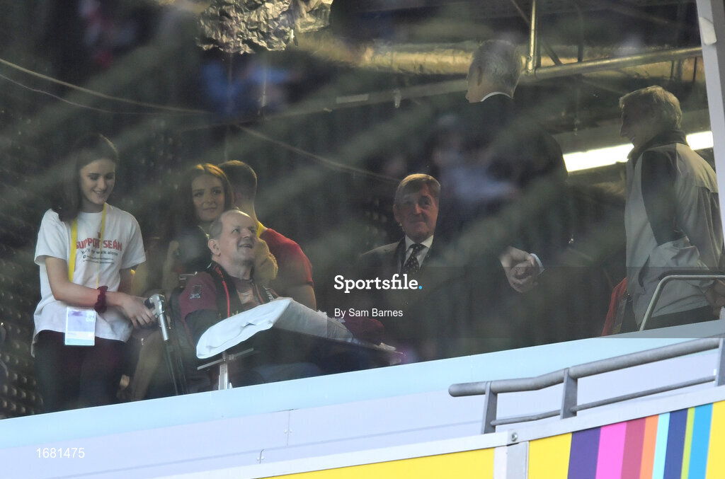 12 April 2019; Sean Cox and family members with Kenny Daglish, Mick McCarthy and Ian Rush in attendance prior to the Sean Cox Fundraiser match between the Republic of Ireland XI and Liverpool FC Legends at the Aviva Stadium in Dublin. Photo by Sam Barnes/Sportsfile