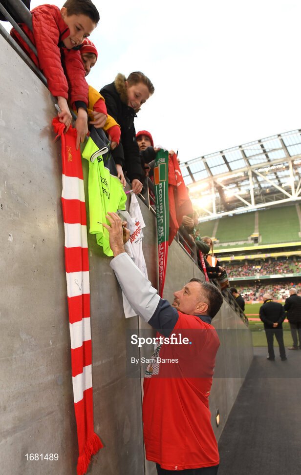 12 April 2019; John Aldridge of Liverpool FC Legends with supporters prior to the Sean Cox Fundraiser match between the Republic of Ireland XI and Liverpool FC Legends at the Aviva Stadium in Dublin. Photo by Sam Barnes/Sportsfile