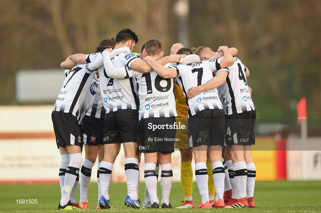 12 April 2019; Dundalk players huddle ahead of the SSE Airtricity League Premier Division match between Sligo Rovers and Dundalk at The Showgrounds in Sligo. Photo by Eóin Noonan/Sportsfile