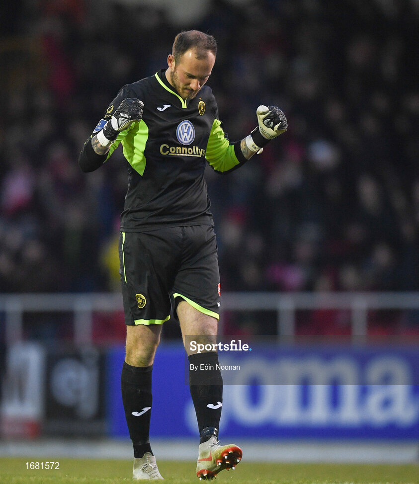 12 April 2019; Mitchell Beeney of Sligo Rovers celebrates after his side score their second goal during the SSE Airtricity League Premier Division match between Sligo Rovers and Dundalk at The Showgrounds in Sligo. Photo by Eóin Noonan/Sportsfile
