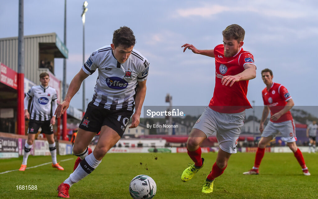 12 April 2019; Jamie McGrath of Dundalk in action against Lewis Banks of Sligo Rovers during the SSE Airtricity League Premier Division match between Sligo Rovers and Dundalk at The Showgrounds in Sligo. Photo by Eóin Noonan/Sportsfile