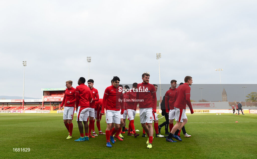 12 April 2019; Sligo Rovers players break away after a huddle ahead of the SSE Airtricity League Premier Division match between Sligo Rovers and Dundalk at The Showgrounds in Sligo. Photo by Eóin Noonan/Sportsfile