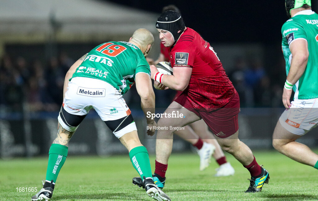 12 April 2019; Ciaran Parker of Munster takes on Marco Lazzaroni of Benetton Treviso during the Guinness PRO14 Round 20 game between Benetton Treviso and Munster Rugby at Stadio di Monigo in Treviso, Italy. Photo by Roberto