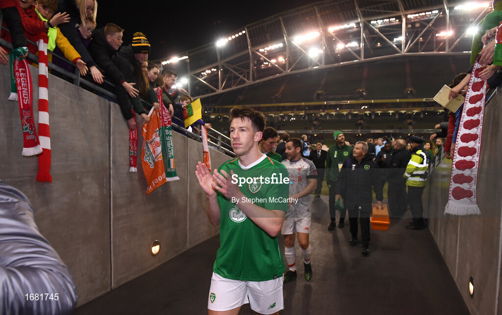 12 April 2019; Sean St Ledger of Republic of Ireland XI after the Sean Cox Fundraiser match between the Republic of Ireland XI and Liverpool FC Legends at the Aviva Stadium in Dublin. Photo by Stephen McCarthy/Sportsfile