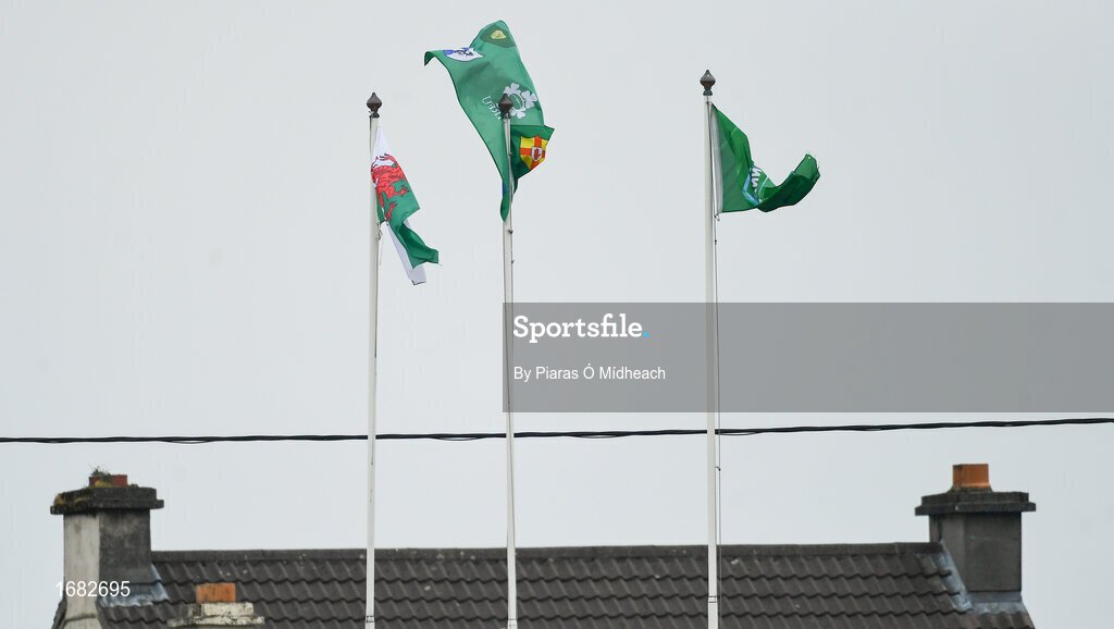 13 April 2019; A general view of the Welsh, IRFU, and Connacht flags flying in the wind during the Guinness PRO14 Round 20 match between Connacht and Cardiff Blues at The Sportsground in Galway. Photo by Piaras Ó Mídheach/Sportsfile