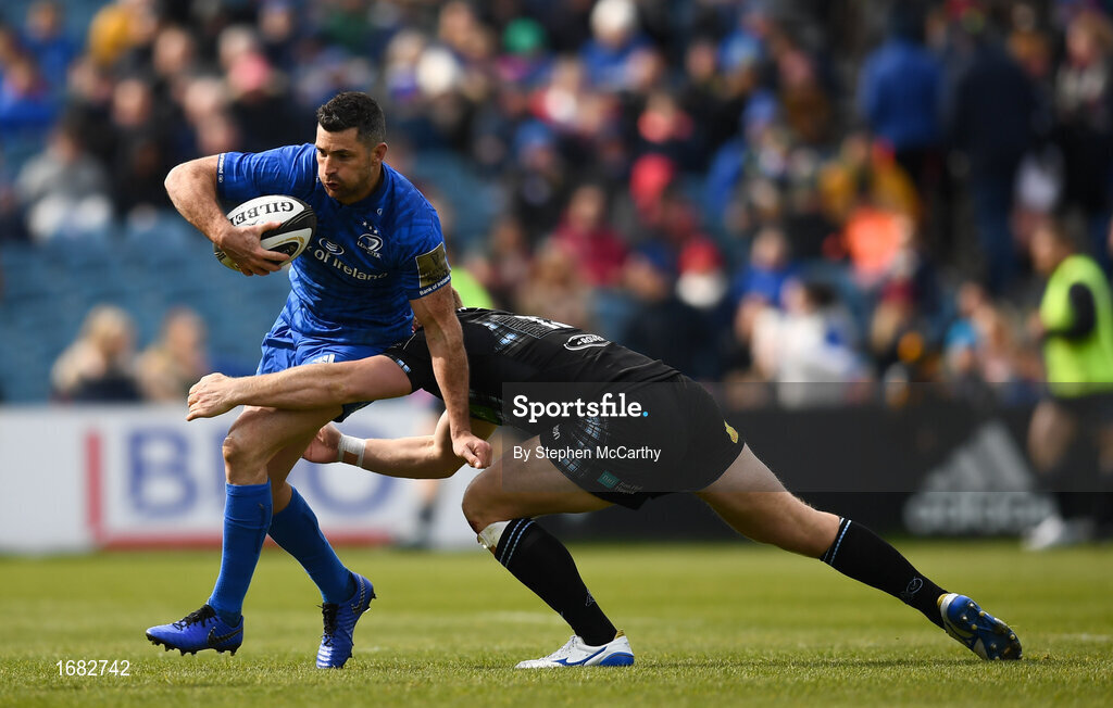 13 April 2019; Rob Kearney of Leinster in action against Kyle Steyn of Glasgow Warriors during the Guinness PRO14 Round 20 match between Leinster and Glasgow Warriors at the RDS Arena in Dublin. Photo by Stephen McCarthy/Sportsfile