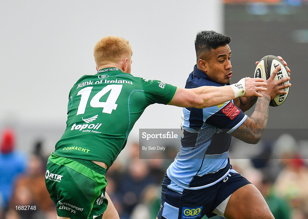 13 April 2019; Rey Lee-Lo of Cardiff Blues in action against Darragh Leader of Connacht during the Guinness PRO14 Round 20 match between Connacht and Cardiff Blues at The Sportsground in Galway. Photo by Seb Daly/Sportsfile