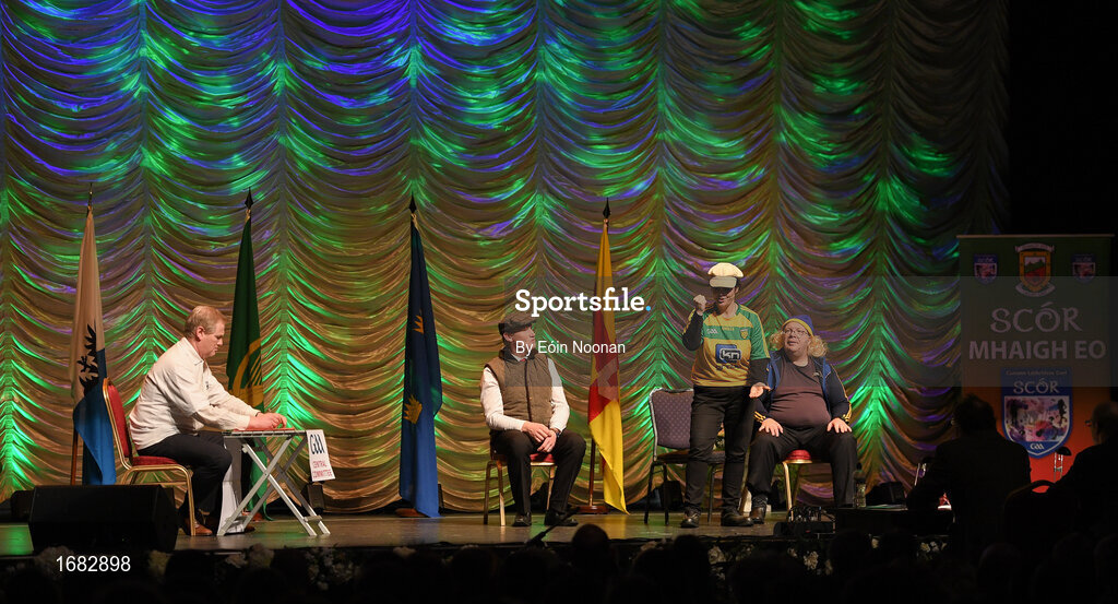 13 April 2019; Leinster team Paul Delahunty, Noel Shannon, Shane Shannon, Elaine Breslin, Tom Malone, Petronella Curran and Michelle O’Hara from Milltown, Kildare, competing in the Léiriú catagory during the Scór Sinsir All Ireland Finals at the TF Royal hotel and theatre, Old Westport road in Castlebar, Co Mayo. Photo by Eóin Noonan/Sportsfile