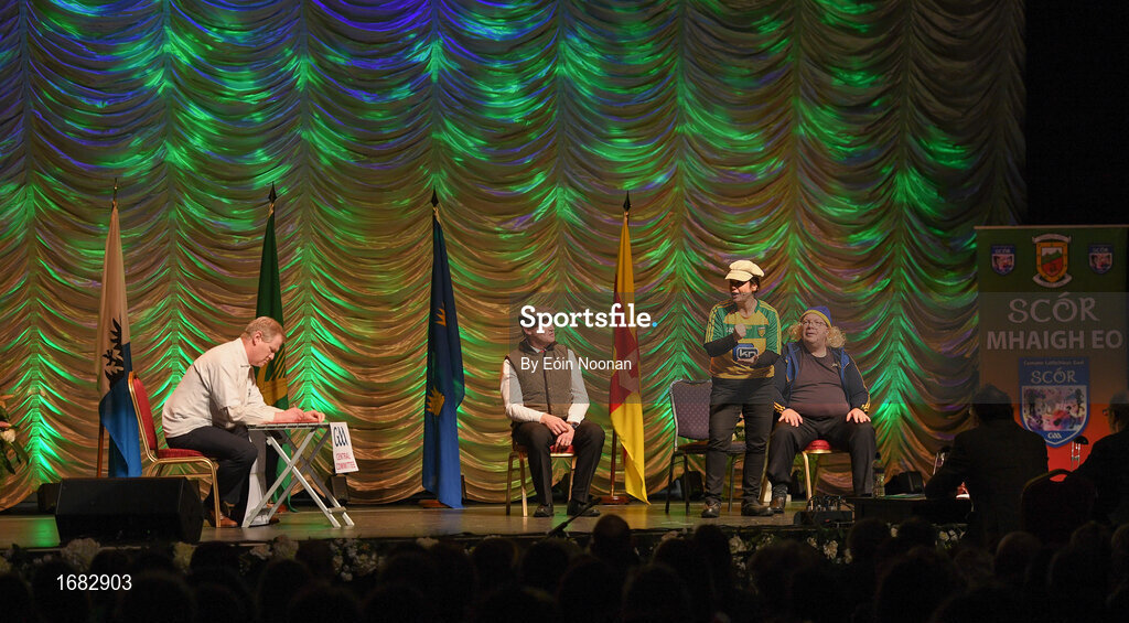 13 April 2019; Leinster team Paul Delahunty, Noel Shannon, Shane Shannon, Elaine Breslin, Tom Malone, Petronella Curran and Michelle O’Hara from Milltown, Kildare, competing in the Léiriú catagory during the Scór Sinsir All Ireland Finals at the TF Royal hotel and theatre, Old Westport road in Castlebar, Co Mayo. Photo by Eóin Noonan/Sportsfile