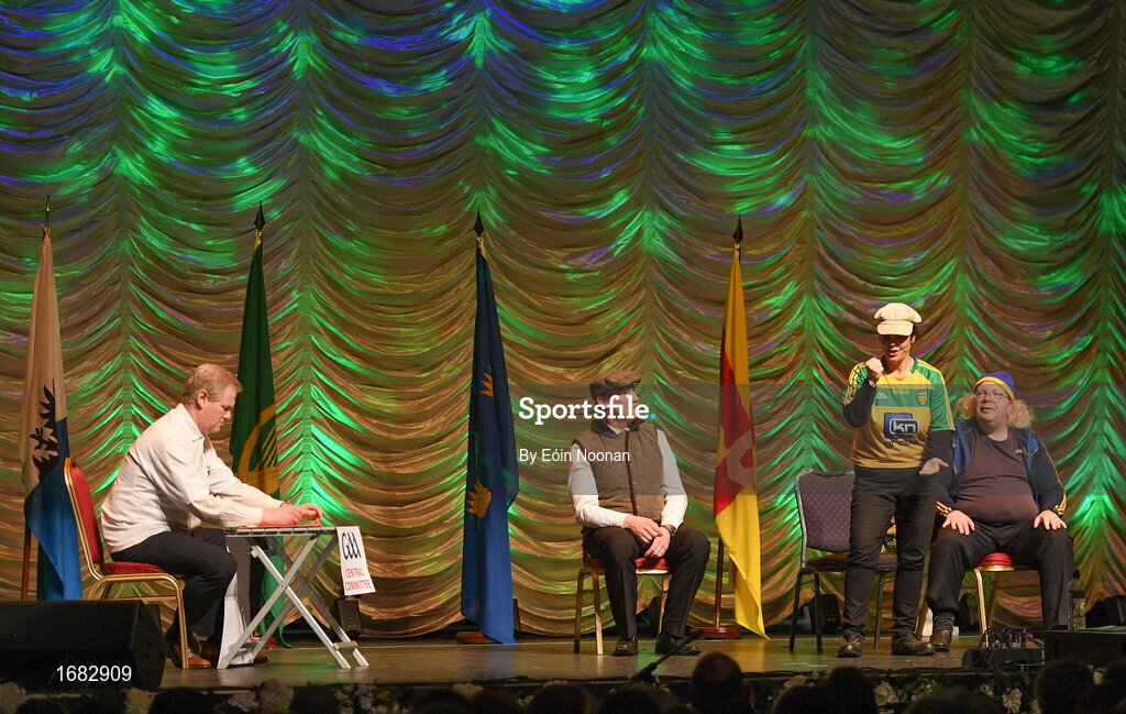 13 April 2019; Leinster team Paul Delahunty, Noel Shannon, Shane Shannon, Elaine Breslin, Tom Malone, Petronella Curran and Michelle O’Hara from Milltown, Kildare, competing in the Léiriú catagory during the Scór Sinsir All Ireland Finals at the TF Royal hotel and theatre, Old Westport road in Castlebar, Co Mayo. Photo by Eóin Noonan/Sportsfile
