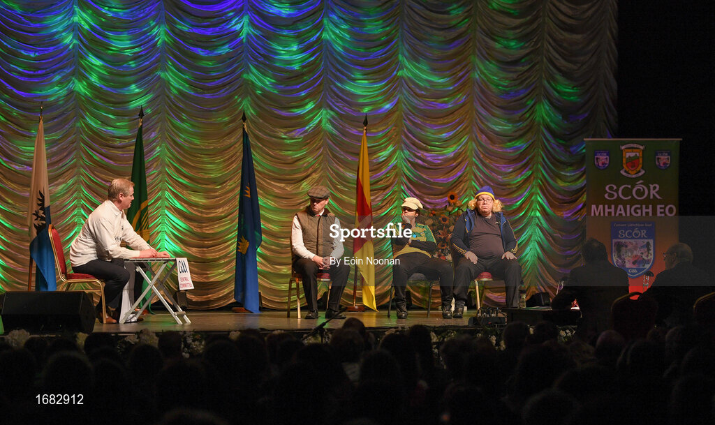13 April 2019; Leinster team Paul Delahunty, Noel Shannon, Shane Shannon, Elaine Breslin, Tom Malone, Petronella Curran and Michelle O’Hara from Milltown, Kildare, competing in the Léiriú catagory during the Scór Sinsir All Ireland Finals at the TF Royal hotel and theatre, Old Westport road in Castlebar, Co Mayo. Photo by Eóin Noonan/Sportsfile