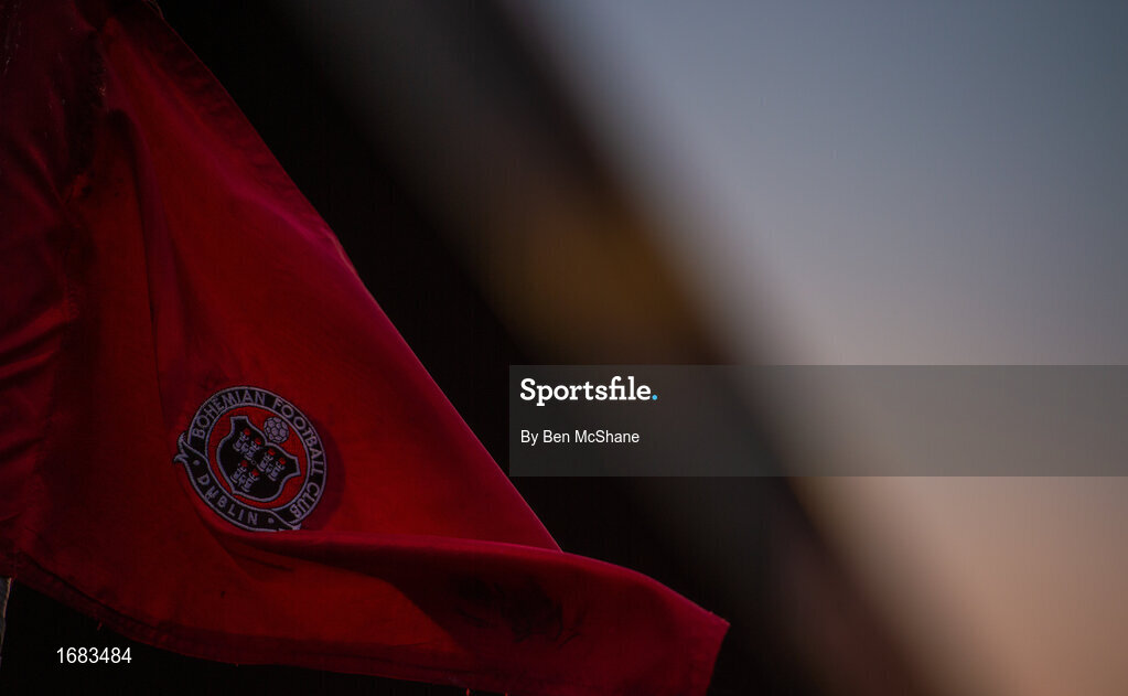 12 April 2019; A Bohemians corner flag is seen at half-time of the SAFIB Centenary Shield Under 18 Boys' International match between Republic of Ireland and England at Dalymount Park in Dublin. Photo by Ben McShane/Sportsfile