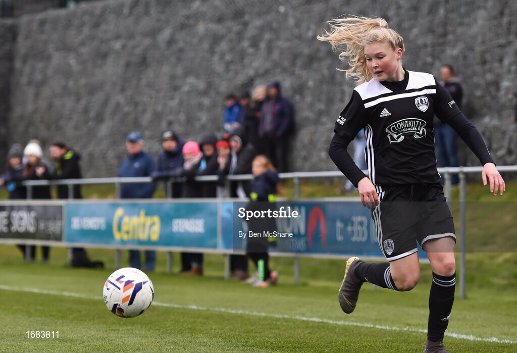 13 April 2019; Eabha O'Mahony of Cork City during the Só Hotels Women's National League match between DLR Waves and Cork City FC at Jackson Park in Kilternan, Dublin. Photo by Ben McShane/Sportsfile