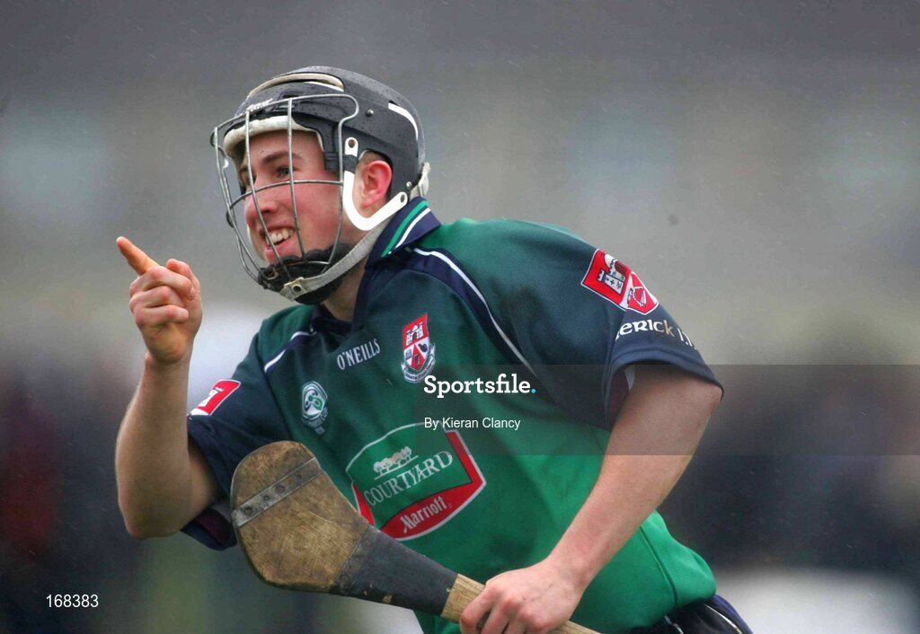 4 March 2005; Niall Healy, Limerick IT, celebrates scoring a goal against NUIG. Datapac Fitzgibbon Cup Semi-Final, Limerick IT v NUI Galway, Limerick Institute of Technology, Limerick. Picture credit; Kieran Clancy / SPORTSFILE