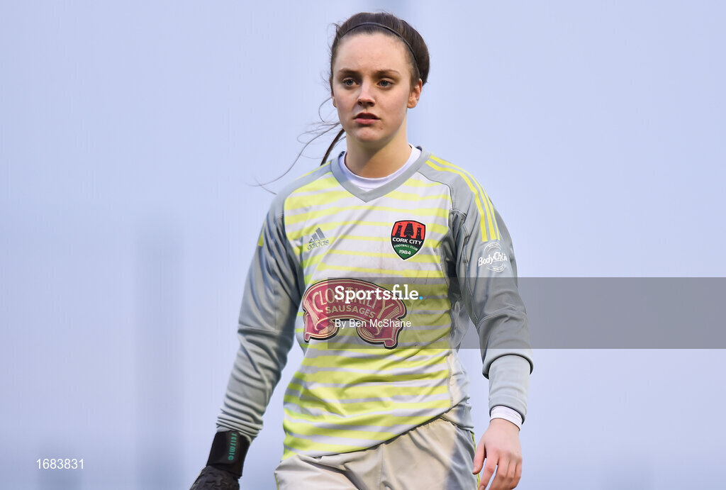 13 April 2019; Maria O'Sullivan of Cork City at half-time of the Só Hotels Women's National League match between DLR Waves and Cork City FC at Jackson Park in Kilternan, Dublin. Photo by Ben McShane/Sportsfile