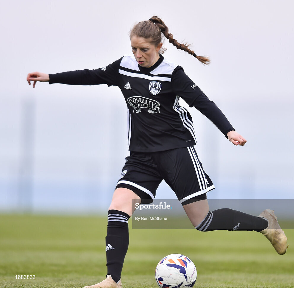 13 April 2019; Katie McCarthy of Cork City during the Só Hotels Women's National League match between DLR Waves and Cork City FC at Jackson Park in Kilternan, Dublin. Photo by Ben McShane/Sportsfile