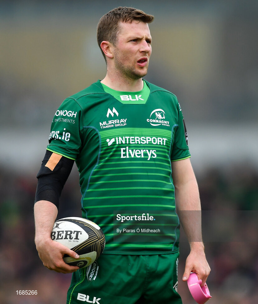 13 April 2019; Jack Carty of Connacht prepares to take a kick during the Guinness PRO14 Round 20 match between Connacht and Cardiff Blues at The Sportsground in Galway. Photo by Piaras Ó Mídheach/Sportsfile