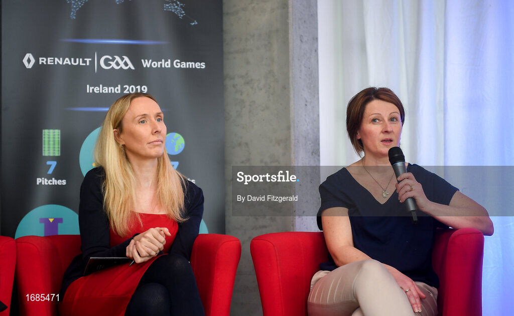 17 April 2019; In attendance are Ita Murphy, Waterford Camogie, left, and Fiona Crotty, Waterford Ladies Football during the Waterford Launch of the Renault GAA World Games 2019 at the WIT Arena in Carriganore, Waterford. Photo by David Fitzgerald/Sportsfile