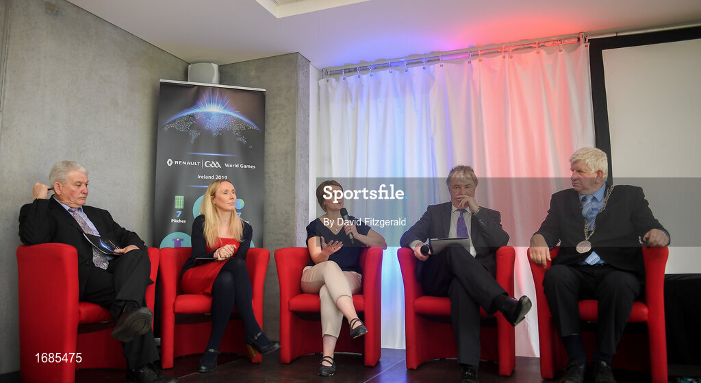 17 April 2019; In attendance, from left, PJ Ryan, Chairman of Waterford County Board, Ita Murphy, Waterford Camogie, Fiona Crotty, Waterford Ladies Football, Michael Walsh, Waterford City and County manager and Declan Duecey, Lord Mayor of Waterford City and County during the Waterford Launch of the Renault GAA World Games 2019 at the WIT Arena in Carriganore, Waterford. Photo by David Fitzgerald/Sportsfile