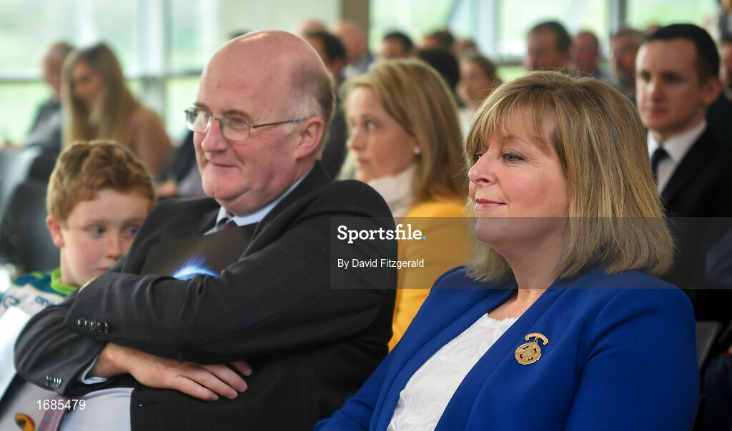 17 April 2019; In attendance are Ladies Gaelic Football Association President Marie Hickey and Uachtarán Chumann Lúthchleas Gael John Horan during the Waterford Launch of the Renault GAA World Games 2019 at the WIT Arena in Carriganore, Waterford. Photo by David Fitzgerald/Sportsfile