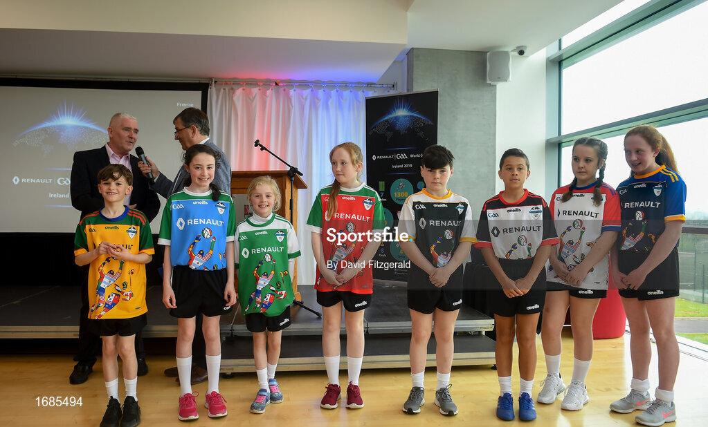 17 April 2019; Children from various Waterford GAA clubs show off the new O'Neills World Games jerseys during the Waterford Launch of the Renault GAA World Games 2019 at the WIT Arena in Carriganore, Waterford. Photo by David Fitzgerald/Sportsfile