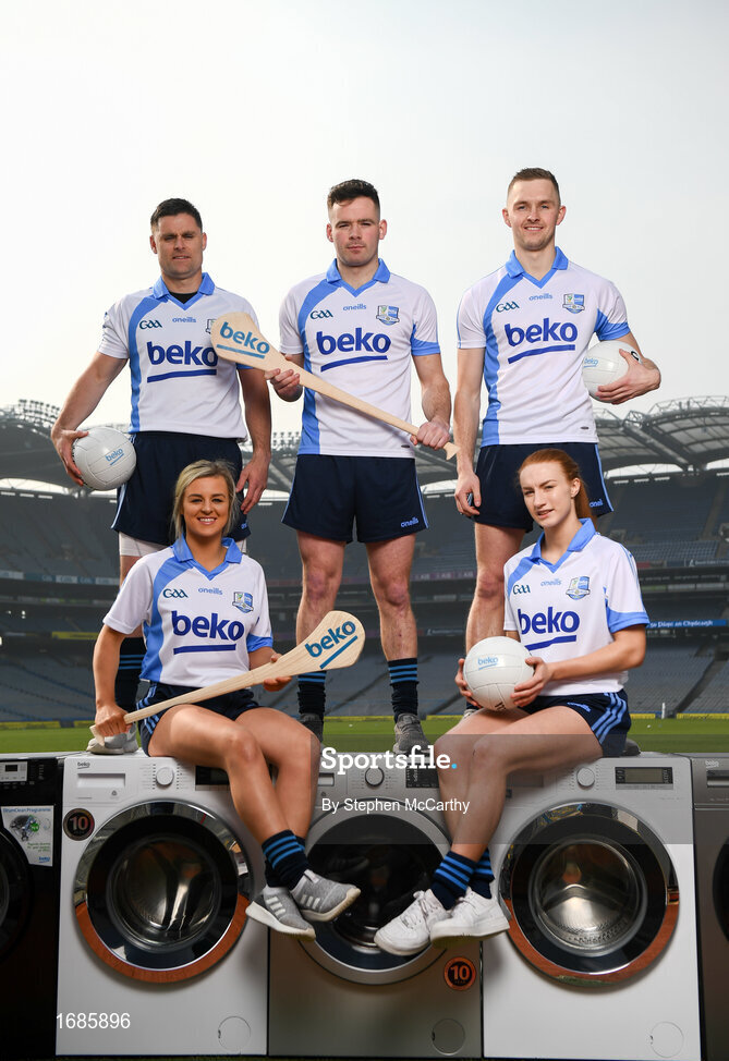 18 April 2019; Shane Mulligan of Mullinalaghta GAA Club, Longford, Grace Walsh of Tullaroan GAA Club, Kilkenny, left, Martin Kavanagh of St Mullins GAA Club, Carlow, centre, Lauren Magee of Kilmacud Crokes GAA Club, Dublin, and Conor McGill of Ratoath GAA Club, Meath, right, at the launch of the Beko Club Bua programme 2019, the quality mark for Leinster GAA clubs. For more information visit leinstergaa.ie/club-bua/. Photo by Stephen McCarthy/Sportsfile