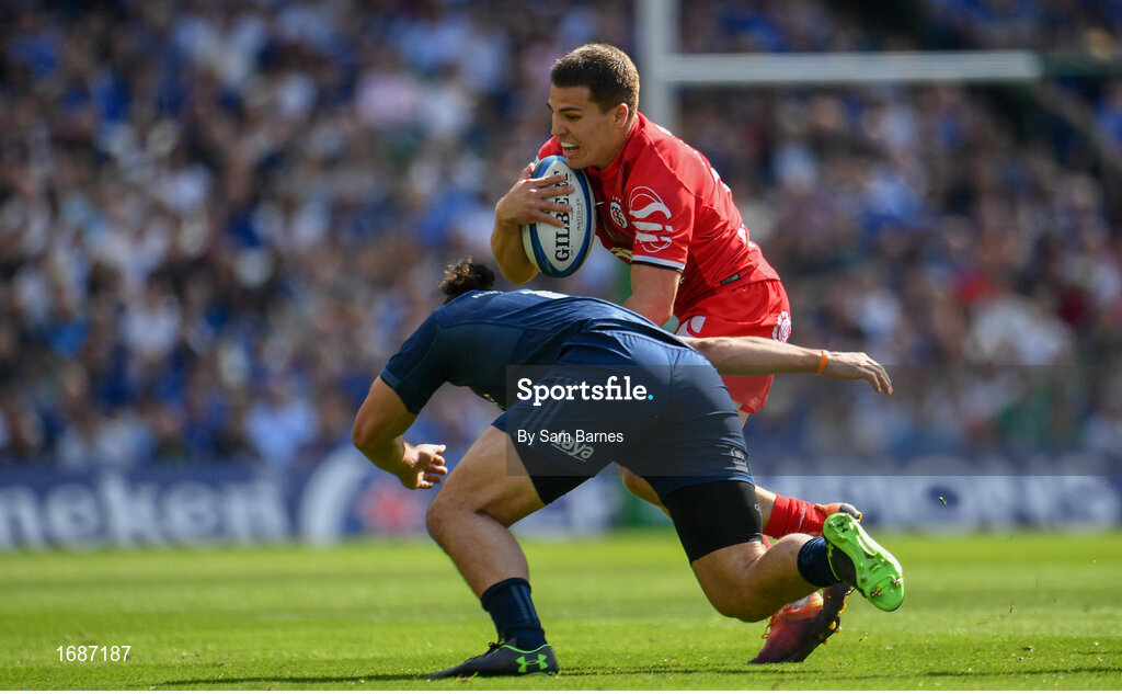 21 April 2019; Antoine Dupont of Toulouse is tackled by James Lowe of Leinster during the Heineken Champions Cup Semi-Final match between Leinster and Toulouse at the Aviva Stadium in Dublin. Photo by Sam Barnes/Sportsfile