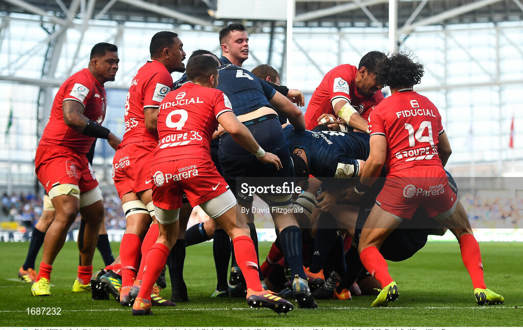21 April 2019; Scott Fardy of Leinster, hidden, pushes over to score his side's second try during the Heineken Champions Cup Semi-Final match between Leinster and Toulouse at the Aviva Stadium in Dublin. Photo by David Fitzgerald/Sportsfile