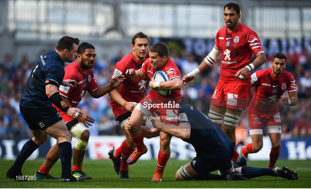 21 April 2019; Sébastien Bézy of Toulouse is tackled by Devin Toner of Leinster during the Heineken Champions Cup Semi-Final match between Leinster and Toulouse at the Aviva Stadium in Dublin. Photo by David Fitzgerald/Sportsfile