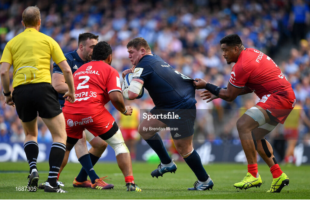 21 April 2019; Tadhg Furlong of Leinster is tackled by Joe Tekori of Toulouse during the Heineken Champions Cup Semi-Final match between Leinster and Toulouse at the Aviva Stadium in Dublin. Photo by Brendan Moran/Sportsfile