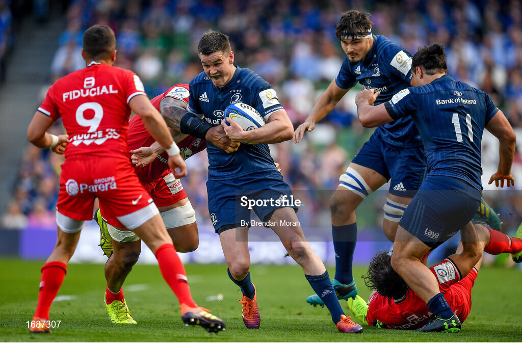 21 April 2019; Jonathan Sexton of Leinster is tackled by Joe Tekori of Toulouse during the Heineken Champions Cup Semi-Final match between Leinster and Toulouse at the Aviva Stadium in Dublin. Photo by Brendan Moran/Sportsfile
