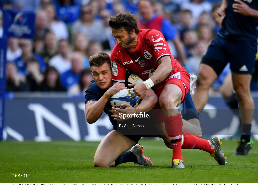21 April 2019; Maxime Médard of Toulouse in action against Garry Ringrose of Leinster during the Heineken Champions Cup Semi-Final match between Leinster and Toulouse at the Aviva Stadium in Dublin. Photo by Sam Barnes/Sportsfile
