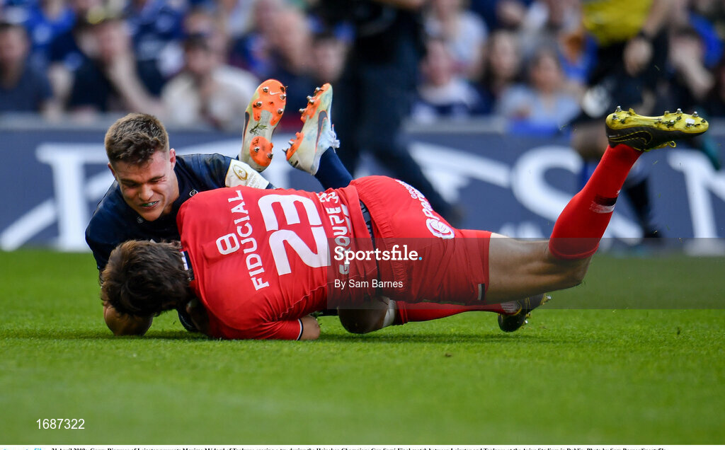 21 April 2019; Garry Ringrose of Leinster prevents Maxime Médard of Toulouse scoring a try during the Heineken Champions Cup Semi-Final match between Leinster and Toulouse at the Aviva Stadium in Dublin. Photo by Sam Barnes/Sportsfile