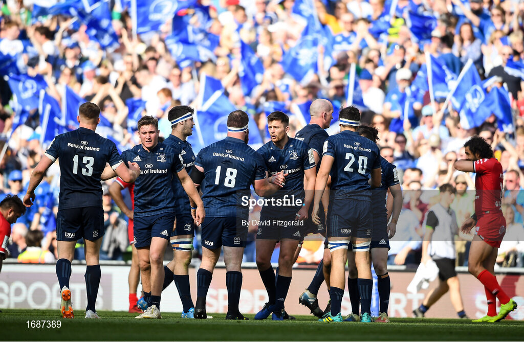 21 April 2019; Leinster players celebrate following the Heineken Champions Cup Semi-Final match between Leinster and Toulouse at the Aviva Stadium in Dublin. Photo by David Fitzgerald/Sportsfile