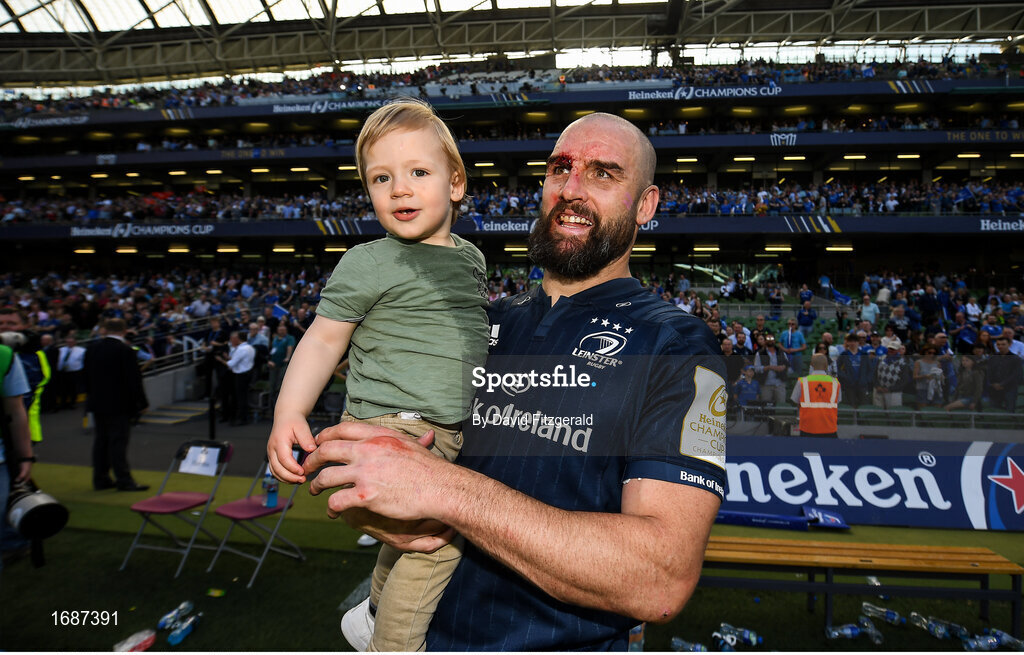 21 April 2019; Scott Fardy of Leinster with his son August following the Heineken Champions Cup Semi-Final match between Leinster and Toulouse at the Aviva Stadium in Dublin. Photo by David Fitzgerald/Sportsfile