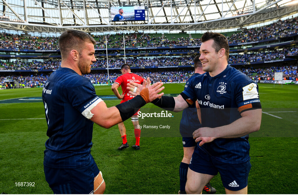 21 April 2019; Seán O'Brien, left, and Cian Healy of Leinster following the Heineken Champions Cup Semi-Final match between Leinster and Toulouse at the Aviva Stadium in Dublin. Photo by Ramsey Cardy/Sportsfile