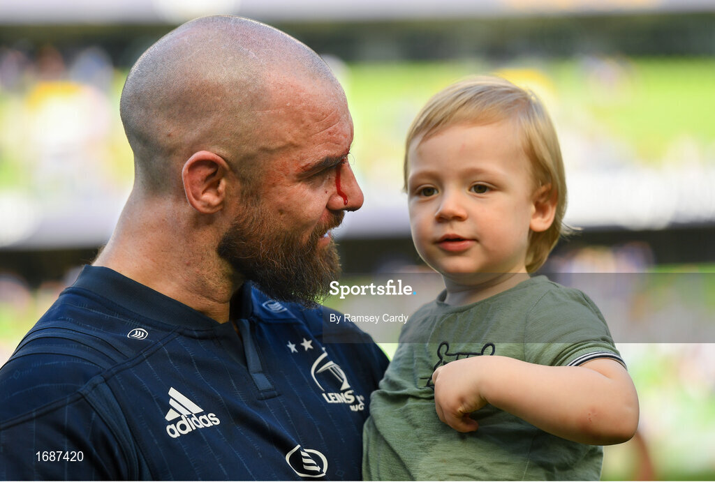 21 April 2019; Scott Fardy of Leinster with his son August following the Heineken Champions Cup Semi-Final match between Leinster and Toulouse at the Aviva Stadium in Dublin. Photo by Ramsey Cardy/Sportsfile