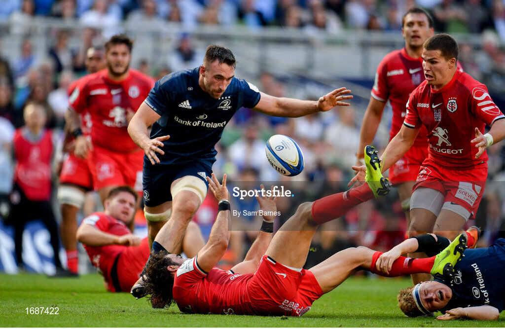 21 April 2019; Yoann Huget of Toulouse in action against Jack Conan of Leinster during the Heineken Champions Cup Semi-Final match between Leinster and Toulouse at the Aviva Stadium in Dublin. Photo by Sam Barnes/Sportsfile