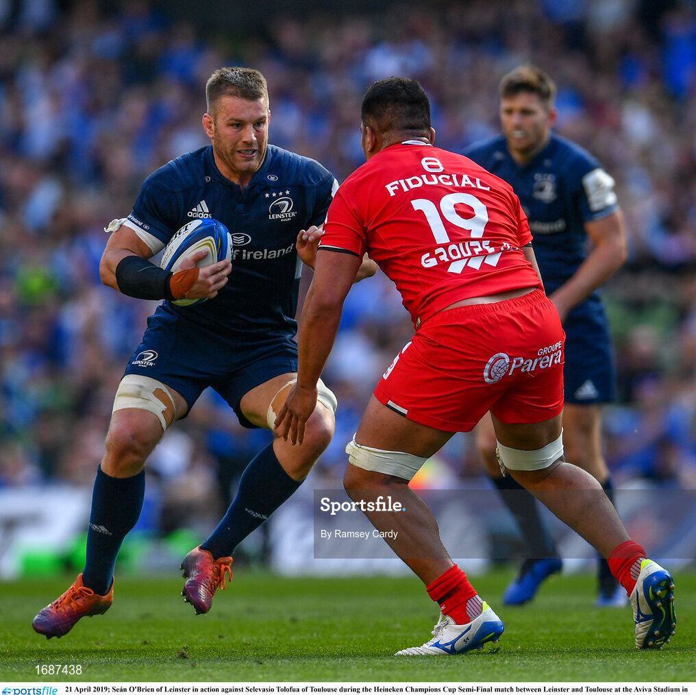 21 April 2019; Seán O'Brien of Leinster in action against Selevasio Tolofua of Toulouse during the Heineken Champions Cup Semi-Final match between Leinster and Toulouse at the Aviva Stadium in Dublin. Photo by Ramsey Cardy/Sportsfile